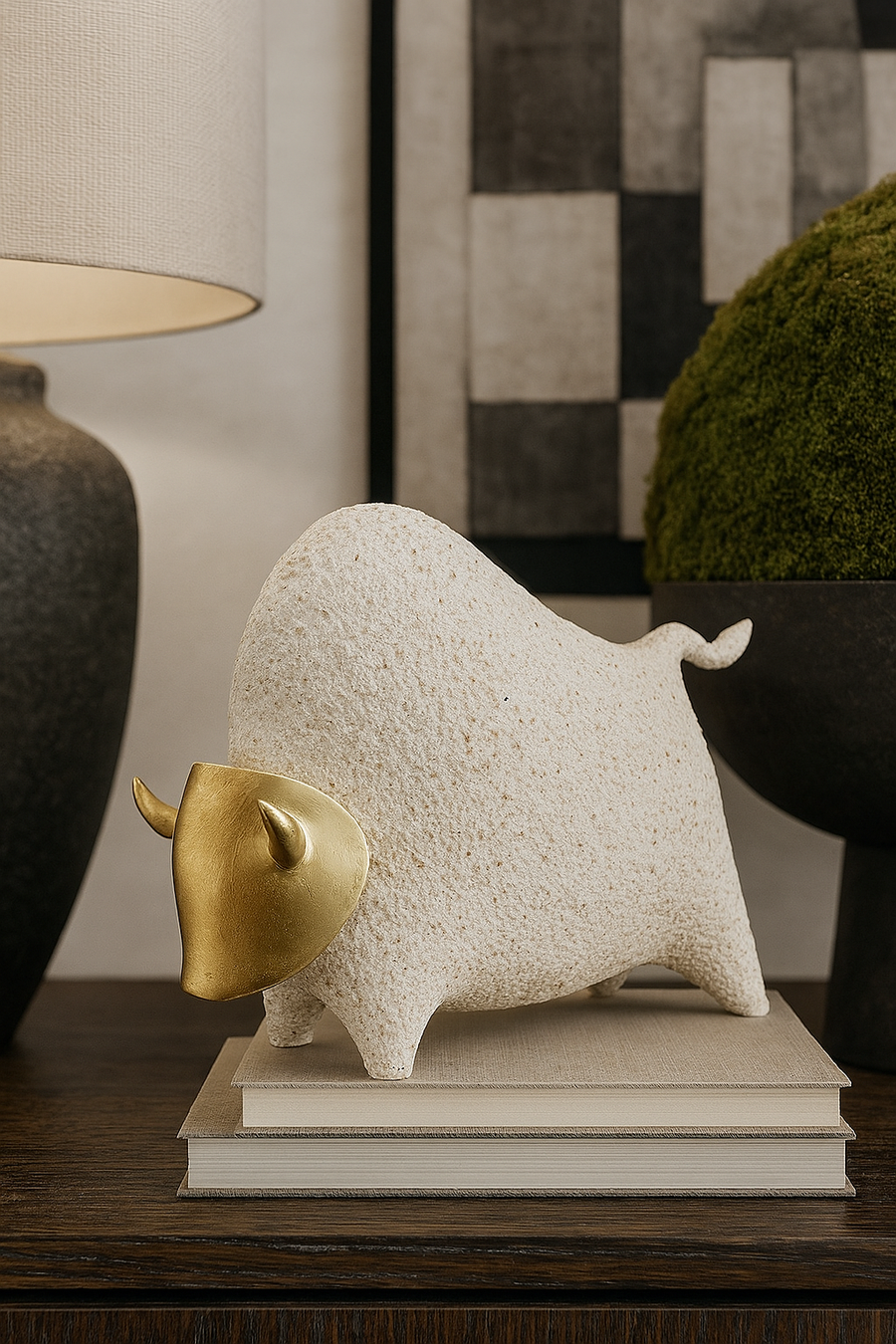 Adorno Decorativo De Ceramica De Toro Color Beige "B"