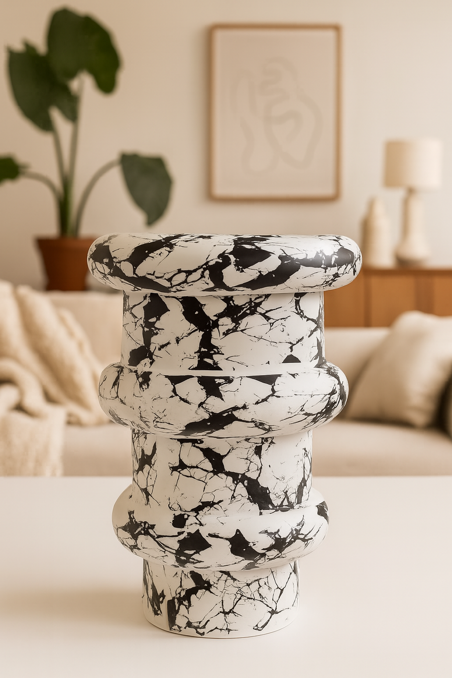 Florero De Poliresina De Color Blanco Con Negro